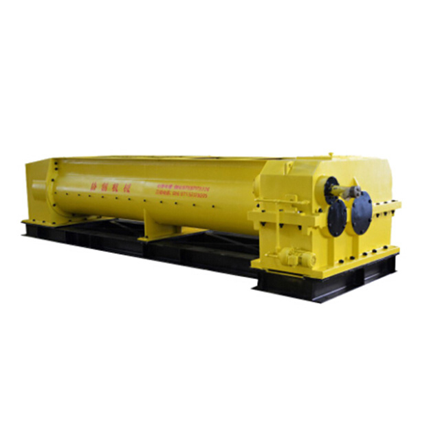 Машина приводится в действие двигателем мощностью 110 кВт и оснащена пневматическим сцеплением.Он приводится в движение специальной коробкой передач средней закалки с двухосевым выходом.Муфта приводится в движение двумя соединительными валами, а смесительный вал оснащен смесительным ножом.Во время работы два перемешивающих вала вращаются внутрь.Когда сырье поступает в смесительный бак, оно разрезается смесительным ножом, установленным на валу мешалки, сжимается и транспортируется, а сырье смешивается и созревает.